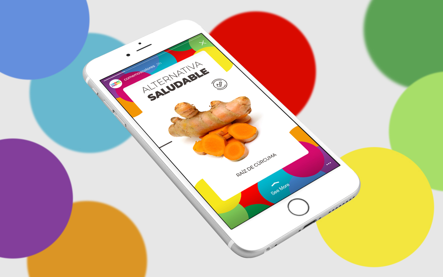 Creation of different pieces for the Instagram account of Comemos Colores, a project that diffuses information about food colorings and how colors play a very important role in choosing a meal.