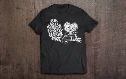 Design of the t-shirts for the Classic Scooter rally “This is not Jamaica, this is the Llobregat”. The idea is to build a story through the years; in every rally’s t-shirt we are telling a new episode of the story of our main characters: a couple of artichokes (a very typical product of the Llobregat area). So they are first a single artichoke couple in a scooter, then they have a baby artichoke… who grows… and ends up buying a scooter… and falls in love… and has children… and so on.