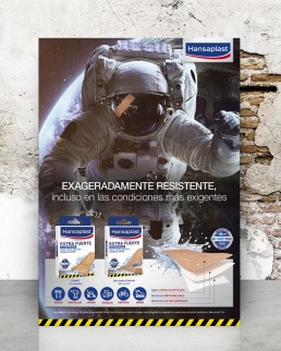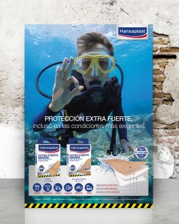 Campanya per Hansaplast àposit “Extra Fuerte”, el primer apòsit de tela forta que proporciona protecció impermeable de la ferida i flexibilitat en un sol producte.