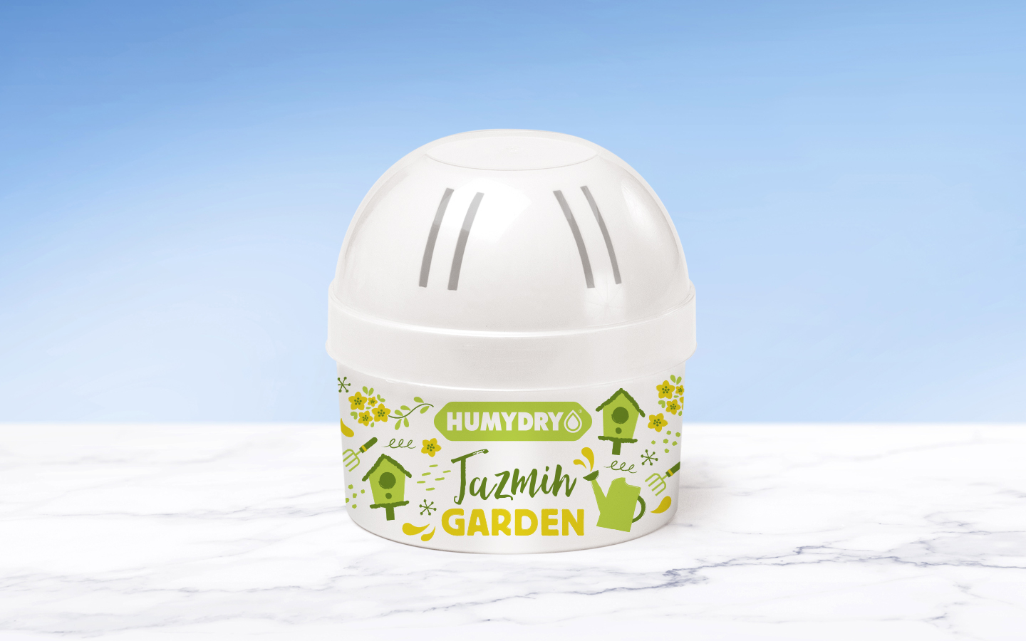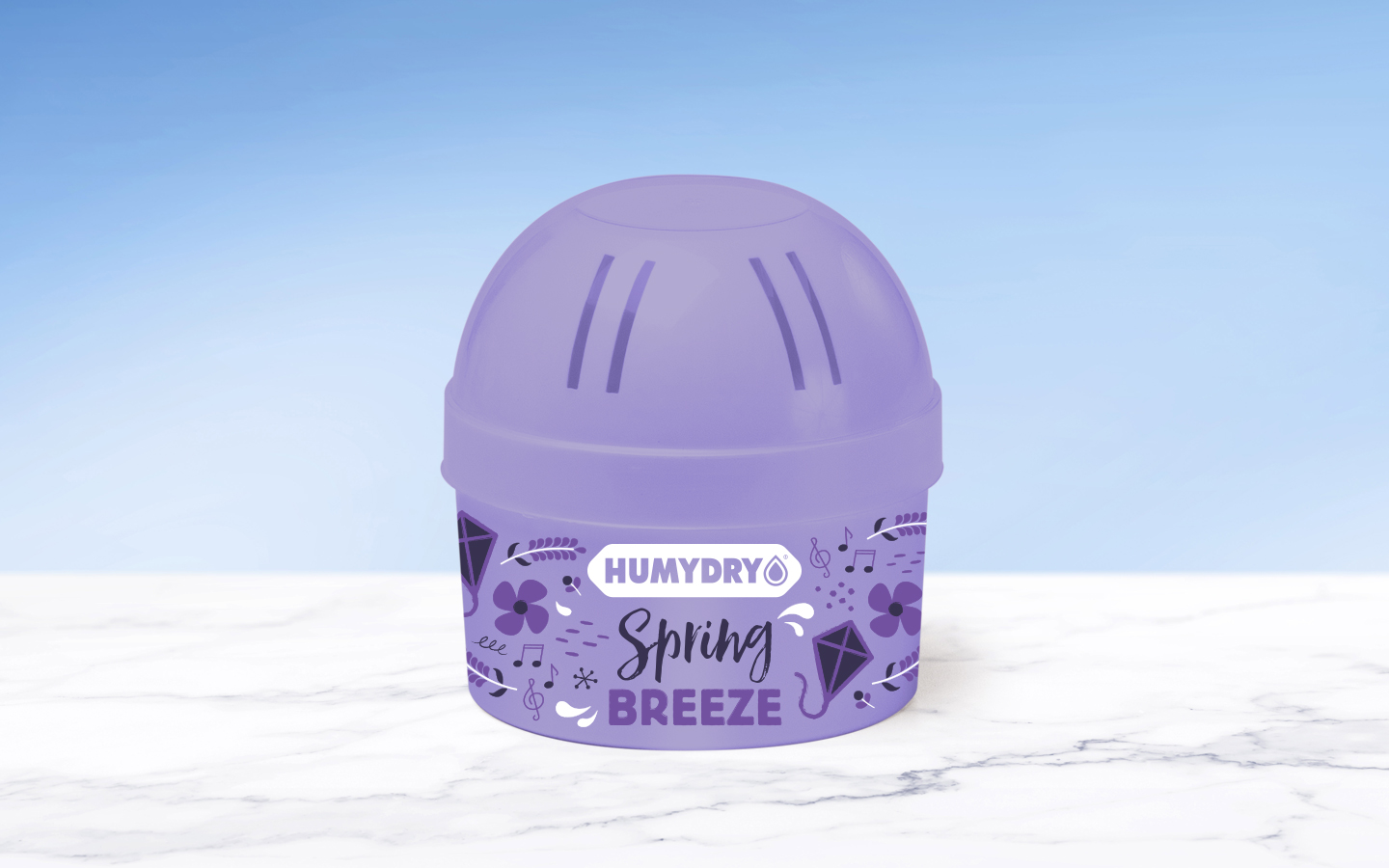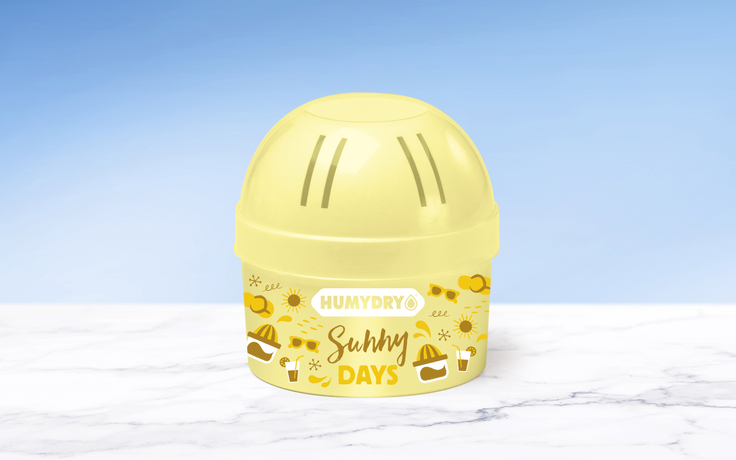 Packaging per a la gamma de diferents fragàncies de Humydry Mini. Protegeix les teves peces de la humitat en armaris i lavabo, evita l’aparició de taques i desprèn una agradable olor.