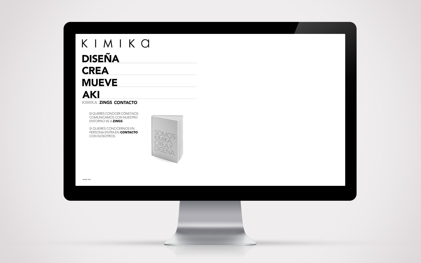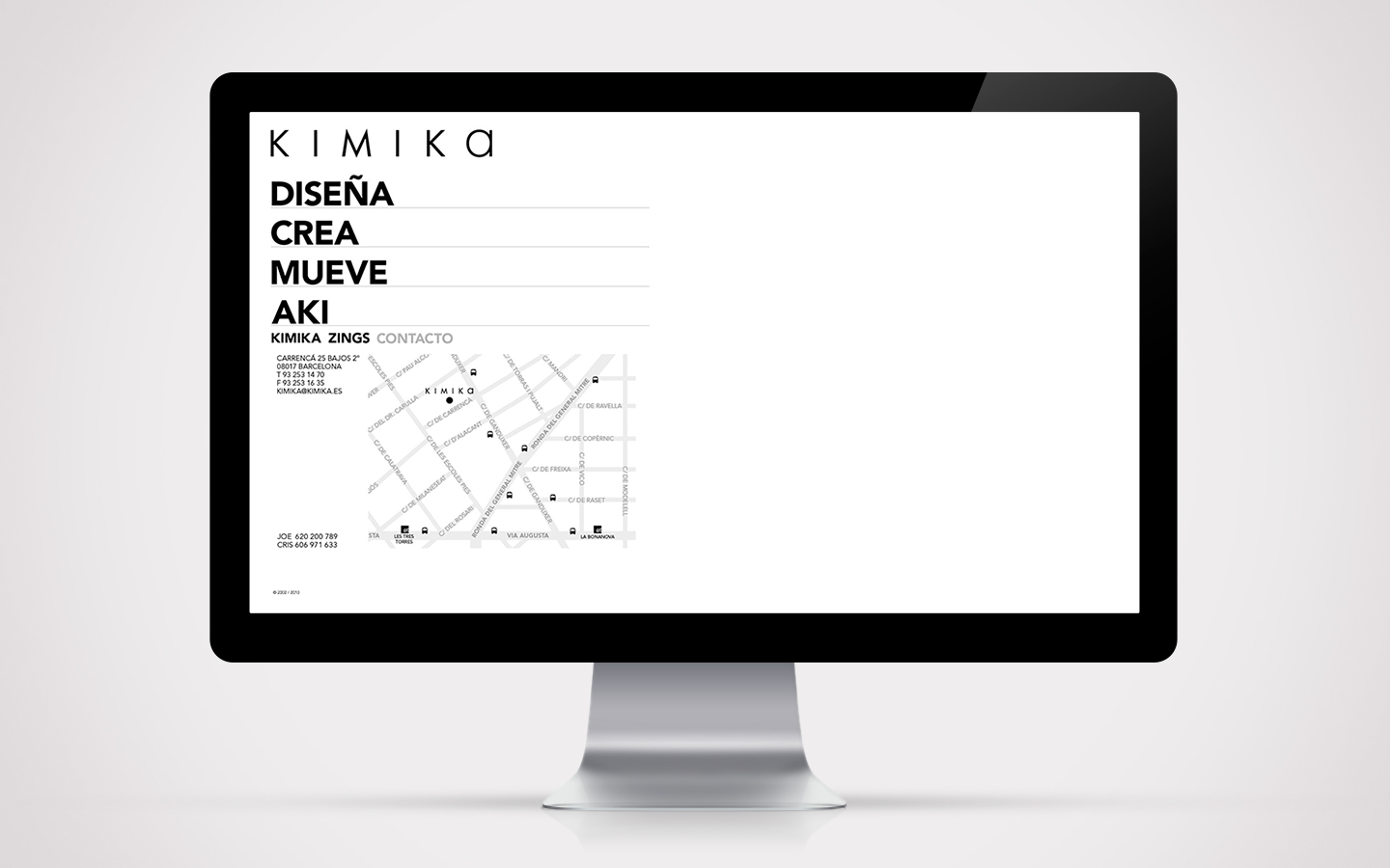 Kimika és un estudi petit on vaig desenvolupar alguns dels meus projectes a finals del 2011. Durant el meu temps allà, vaig construir de nou la seva pàgina web, treballant la programació, disseny gràfic i també les peces publicitàries pel seu llançament.