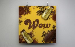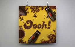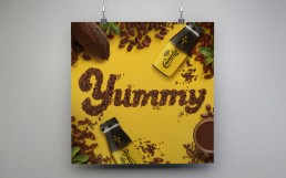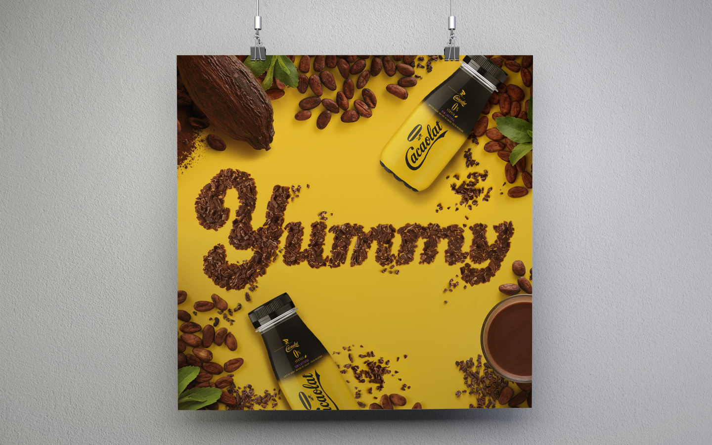 Creació de diferents peces per a Cacaolat utilitzant onomatopeies per cada producte realitzant una composició tipogràfica amb elements relacionats amb la marca.