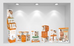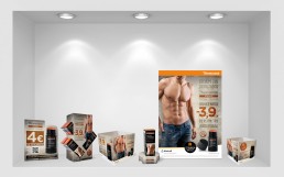 POS material such as sale stands, cubes, vinyl stickers and more for the campaign “At last!” and Sculpt your Thiomucase Results 2014.