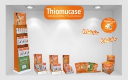 Materials per al punt de venda com a expositors, cartel·les, ficticis, cubs, regletes, vinils, etc.. per a la campanya Celulista de Thiomucase 2015.