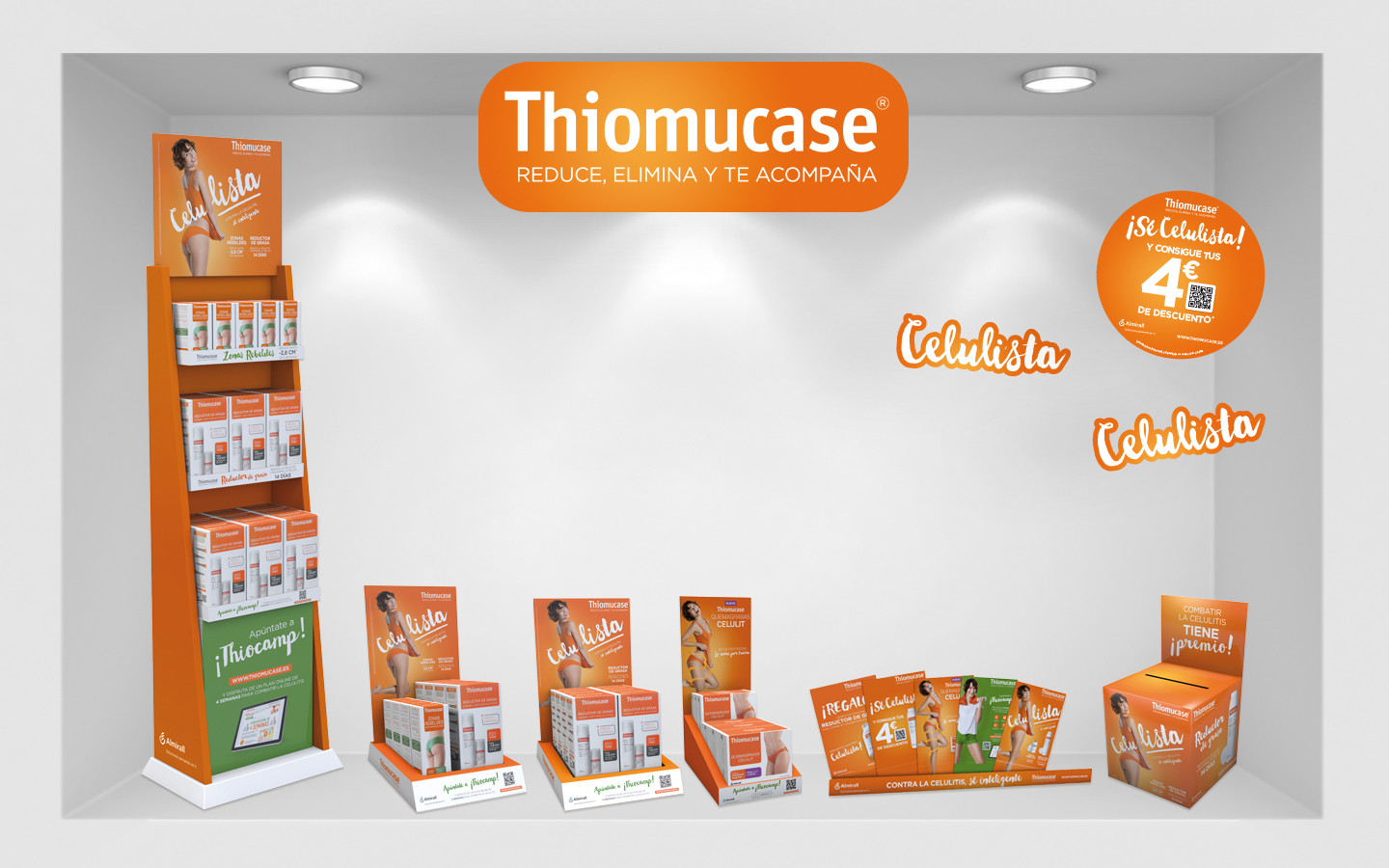POS materials such as sale stands, cubes, vinyl stickers, etc. for the “Celulista” (“Celu-Ready”, in Spanish) 2015 Thiomucase campaign.